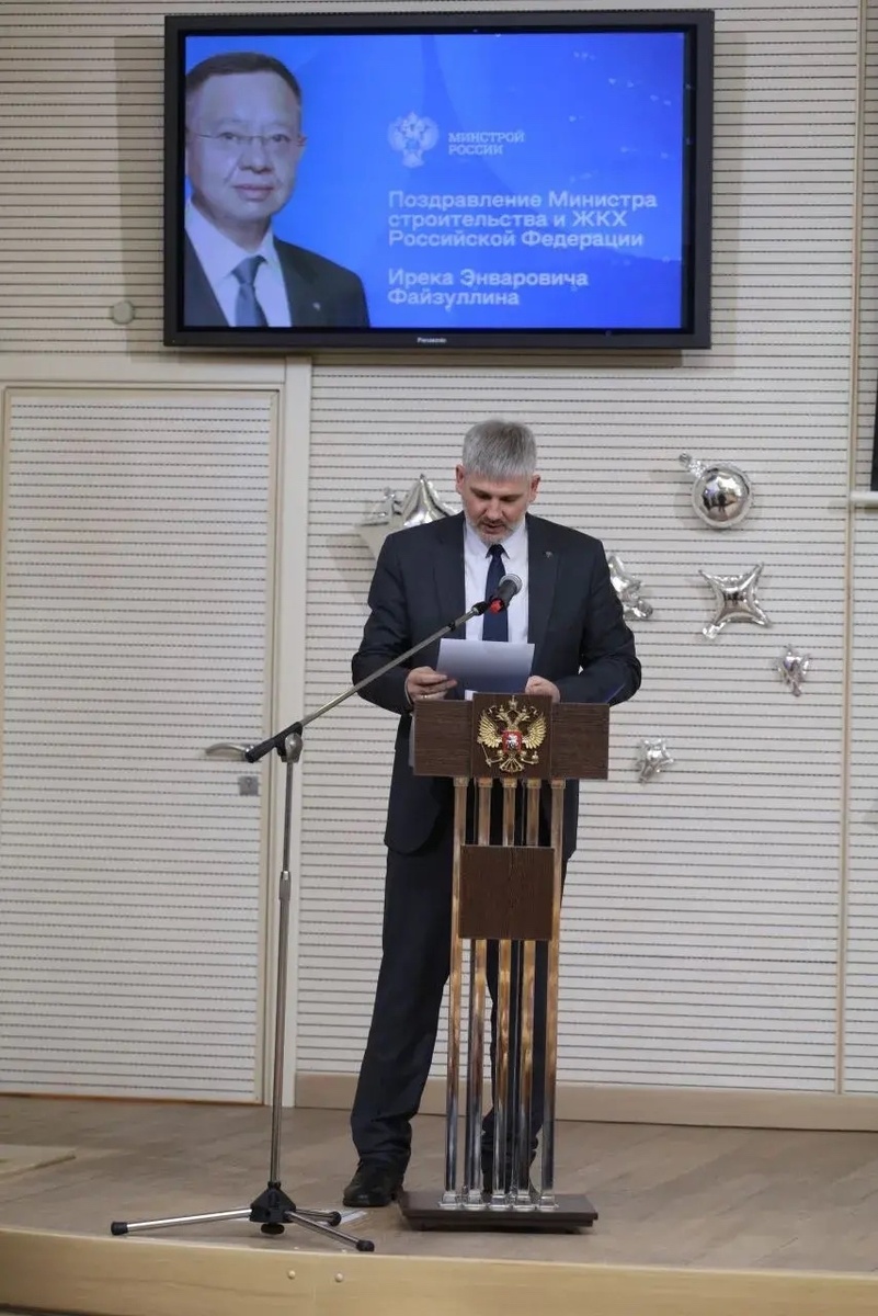 Представители Минстроя России вручили ведомственные награды в Комитете государственного строительного надзора города Москвы Замминистра строительства и ЖКХ РФ Сергей Музыченко зачитал приветствие Главы Минстроя России Ирека Файзуллина и вручил ведомственные награды. «В рамках реализации национального проекта «Инфраструктура для жизни» строительная отрасль страны приступила к решению масштабных задач. Выражаю искреннюю благодарность за профессионализм и важную роль в развитии столицы. Благодаря вашему труду и эффективной системе надзора Москва демонстрирует лидирующие показатели по вводу объектов в стране», - Ирек Файзуллин. Эти цифры не просто статистика – за ними комфортные квартиры, современная социальная и транспортная инфраструктура, деловые и общественные пространства, что в конечном итоге формирует качественную городскую среду для жизни москвичей. За большой вклад в развитие строительной отрасли и плодотворное сотрудничество с Правительством Москвы по реализации социально з