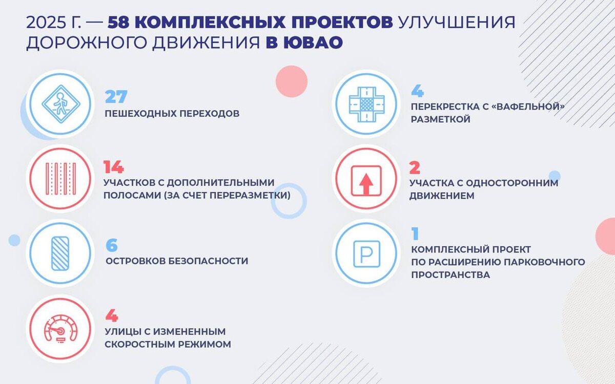 🚧В Юго-Восточном округе Москвы реализовали 58 проектов для более комфортного и безопасного движения
