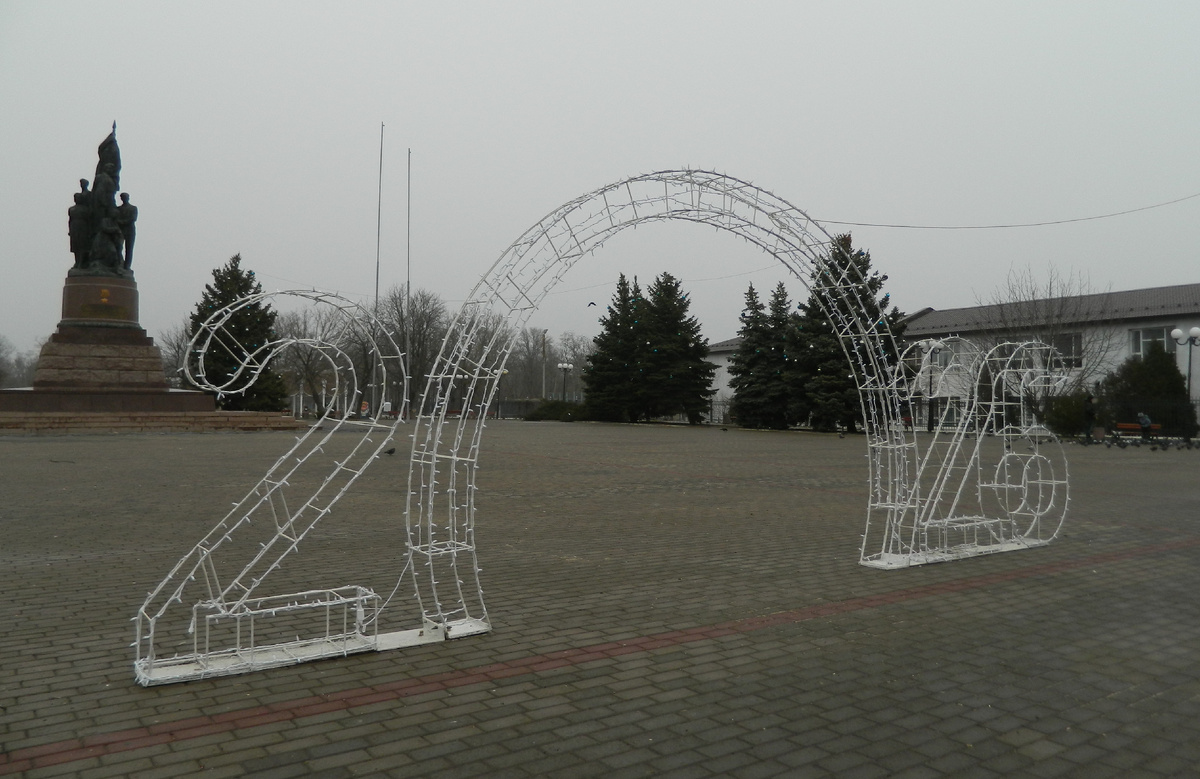 Пошла четвертая неделя традиционной уже в наших краях недозимы, до НГ остались считанные дни. Несмотря на мерзопакостную погоду, всё же пнул себя прогуляться по центру города на выходных, оперативно глянуть, как Краснодон готовится к новогодним праздникам. Так как городскую елку у местного ДК на момент вылазки еще не успели смонтировать, то отправился прогуляться по декабрьскому парку. В условиях тумана и окружающей промозглости предновогодние красоты смотрелись печальненько, но вечернюю вылазку, когда зажигаются праздничные гирлянды, решил отложить всё же на другой раз. Днём же виды предпраздничного города на площади Молодой Гвардии выглядят примерно так: В краснодонском же городском парке, на приближение главного праздника всей страны, намекают лишь несколько новых тематических арт-конструкций да гирляндная иллюминация. Весь искусственный "зоопарк" зимует тут же )) Очередная по счёту "скамья примирения", не так давно появившаяся на территории парка. Вторая, более скромная, украша