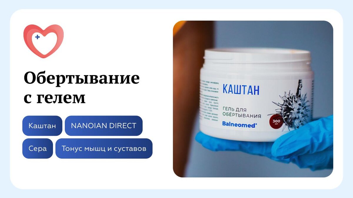 » 🧖🏻♀️ Друзья, вы когда-нибудь мечтали о процедуре, которая одновременно борется с «апельсиновой коркой», снимает отеки и дарит коже невероятную упругость? Сегодня не нужно мечтать — нужно делать профессиональные обертывания с целебными гелями! ✅ Обертывание с гелем «Каштан» Гель для обертывания «Каштан» — это средство против варикозного расширения вен нижних конечностей. Курс применения помогает снизить боли и отечность ног, а также может быть эффективен при ушибах, гематомах, растяжениях связок, вывихах. ✅ Обертывания с гелем «NANOIAN DIRECT» Гель для обертывания «NANOIANDIRECT» — это продукт с противовоспалительными свойствами на основе нафталанской нефти. ✅ Обертывания с гелем «Сера» Гель для обертывания «Сера» обладает двойным действием – помогает противостоять воспалению в суставах и борется с болезнями кожи. ✅ Обертывания с гелем «Тонус мышц и суставов» Гель для обертывания «Тонус мышщ и суставов» — это средство против боли в мышцах и суставах. В состав геля входит