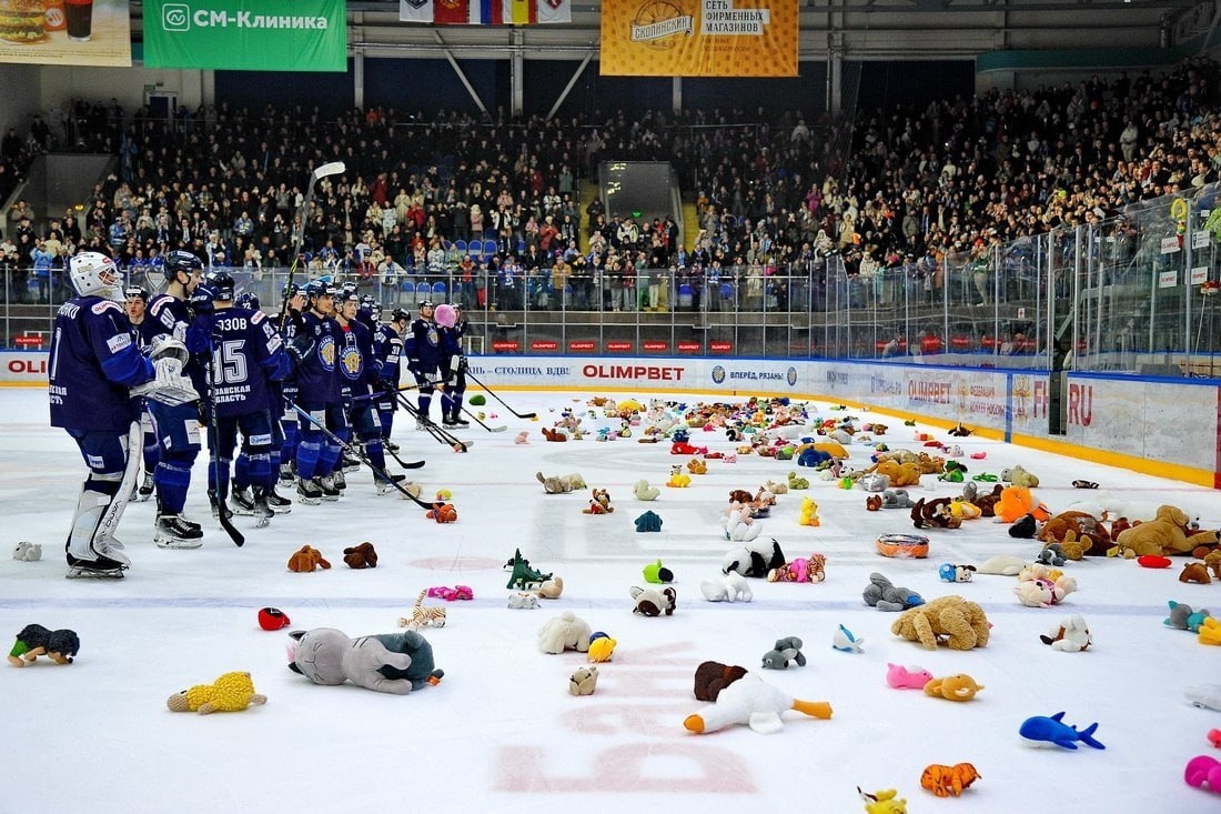 мишкопад! 🧸 Такую благотворительную акцию проведут в «Олимпийском» — на заключительном матче года ХК «Рязань-ВДВ». Ребята сыграют с воронежским «Бураном». В конце матча болельщики и поклонники хоккея усыпят лёд мягкими игрушками — все подарки потом передадут в рязанские больницы и реабилитационные центры детям. 🤲 Обычно такие встречи проходят очень трогательно — и для самих хоккеистов в том числе. Потому что именно они потом приезжают в гости к детям и вручают подарки и создают настроение. 🏒Начало матча в 19:00, адрес арены — улица Зубковой, 12, корпус 2. Приобрести билеты тут. #гуляка_спорт 🤩 Рязанский гуляка 🇷🇺 Рязанский гуляка