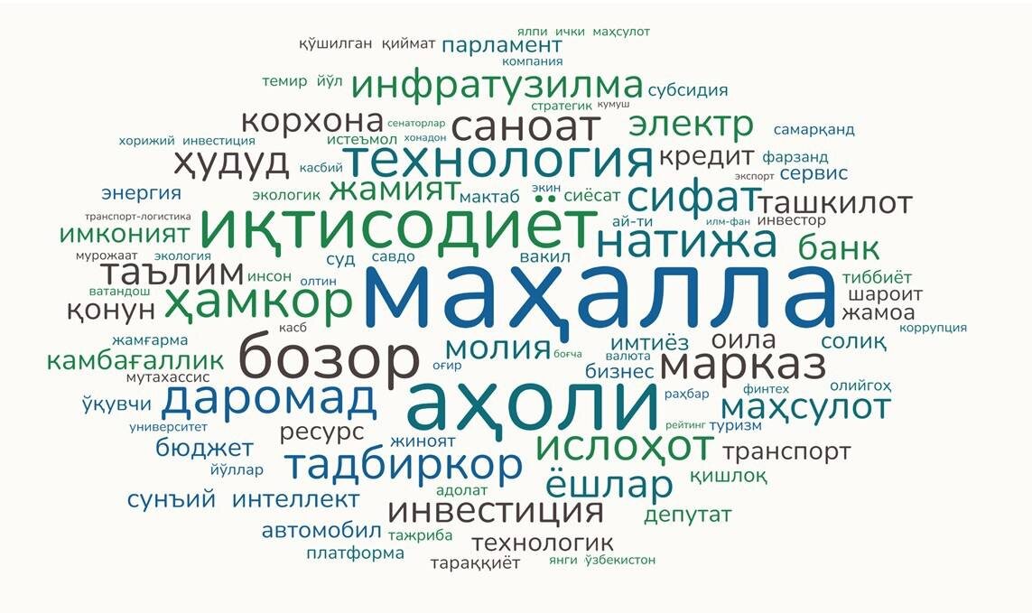 Prezident Murojaatnomasining leksik tahlili: eng ko‘p foydalanilgan so‘zlar, asosiy mavzularning ulushi va tarkibi