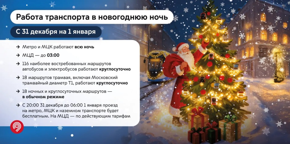 Метро и МЦК в Москве традиционно будут работать всю новогоднюю ночь - проезд бесплатный.