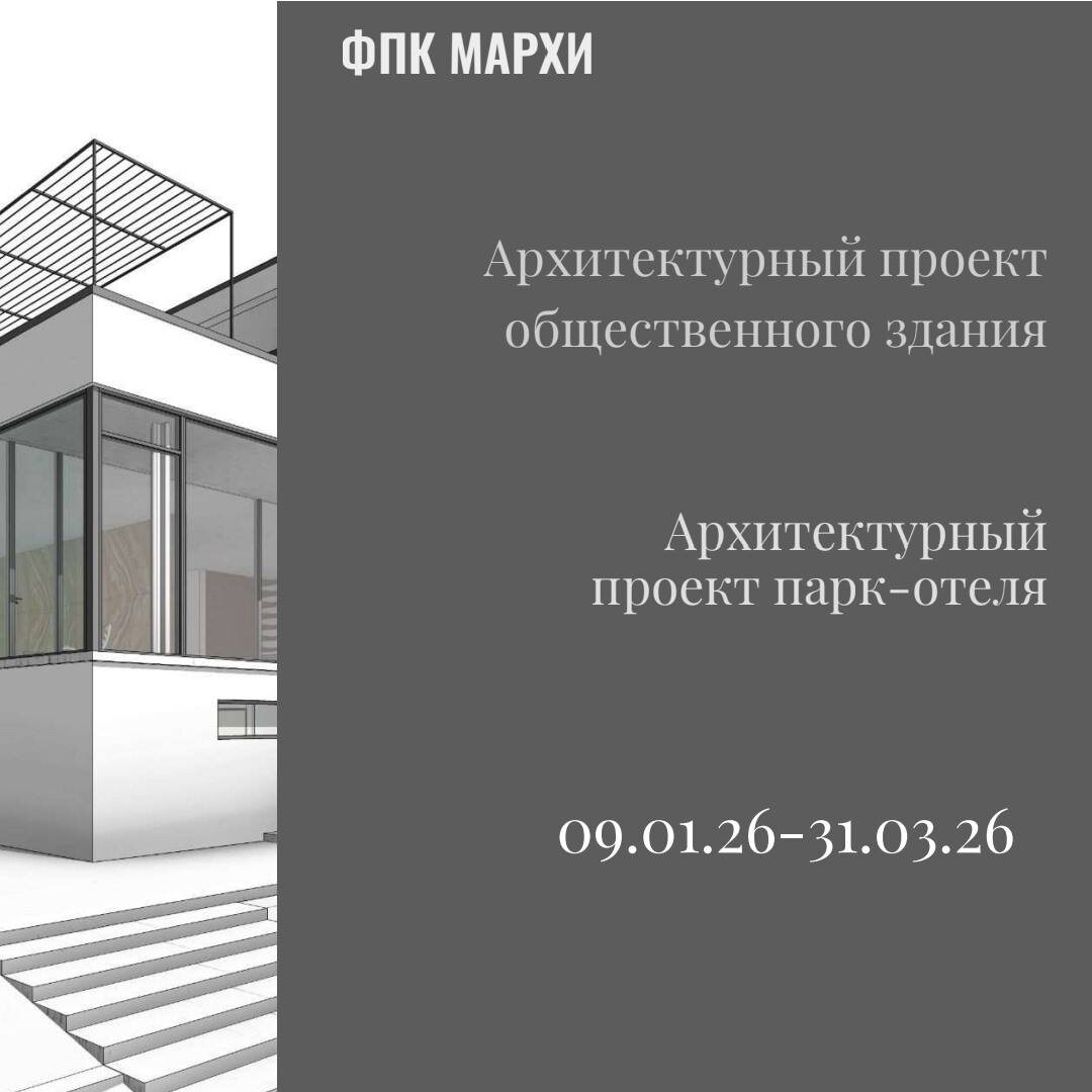 парк-отеля" Продолжительность курса повышения квалификации -420 ак.ч. Обучение будет проводится – 2 раза в неделю по 4 аудиторных часа. с 18.30 до 21.30.Часть учебного материала даётся в записях. Для слушателей из Москвы и из других регионов России обучение проводиться очно с применением ДИСТАНЦИОННЫХ технологий (в форме вебинаре) . Период обучения с 09.01.26г.-31.03.26г. По окончании курса выпускникам выдаётся Удостоверение о повышении квалификации установленного образца МАРХИ. Заявки на обучения ФИО участника, номеров телефонов и адреса электронной почты необходимо направлять в МАРХИ на факультет повышения квалификации «ФПК МАРХИ» на электронный адрес: fpk@marhi.ru. Подробная информация и справки по тел: +7 (916) 915-15-18, + 7 (903) 118-21-06 и по ссылке marhi.ru/fpkp/