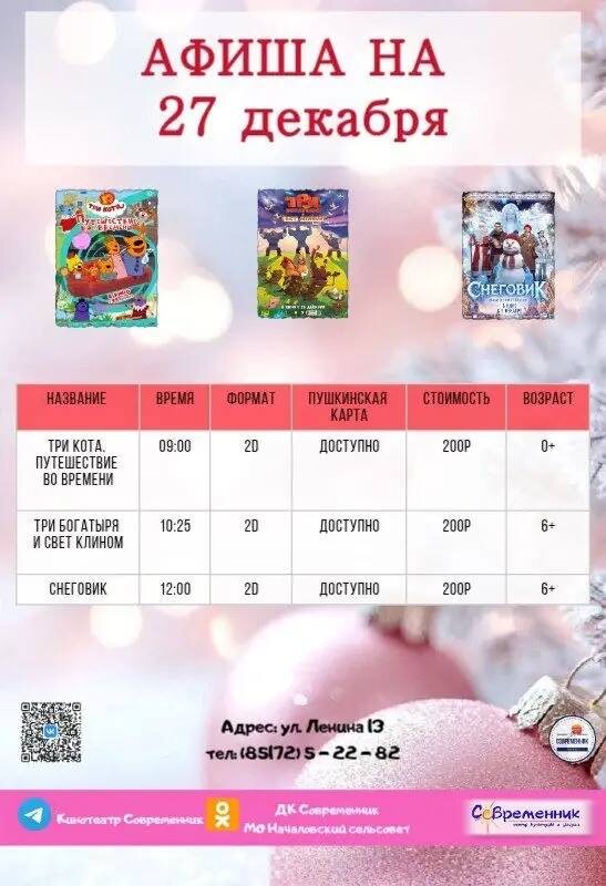 ! ❄️ А за окном зимняя сказка – мороз и немного снега! Идеальное время, чтобы замедлиться, согреться и насладиться предпраздничной атмосферой. Мы знаем, как сделать ваши выходные по-настоящему волшебными! ✨ Приглашаем вас в наш любимый ДК "Современник" на уютные киновыходные! #Приволжскийрайон #культурныевыходные