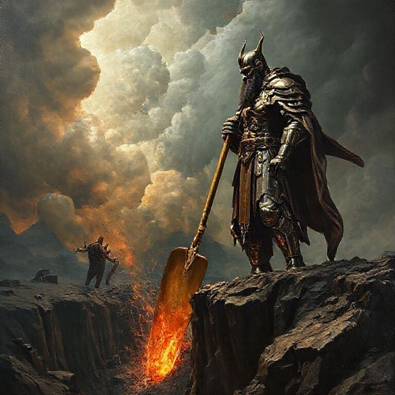 · Золотой ключ и разлом: Фигура внизу с золотым ключом (образ из вашего текста) направляет свет на разлом между иллюзией и реальностью, что отсылает к возможности прозрения.