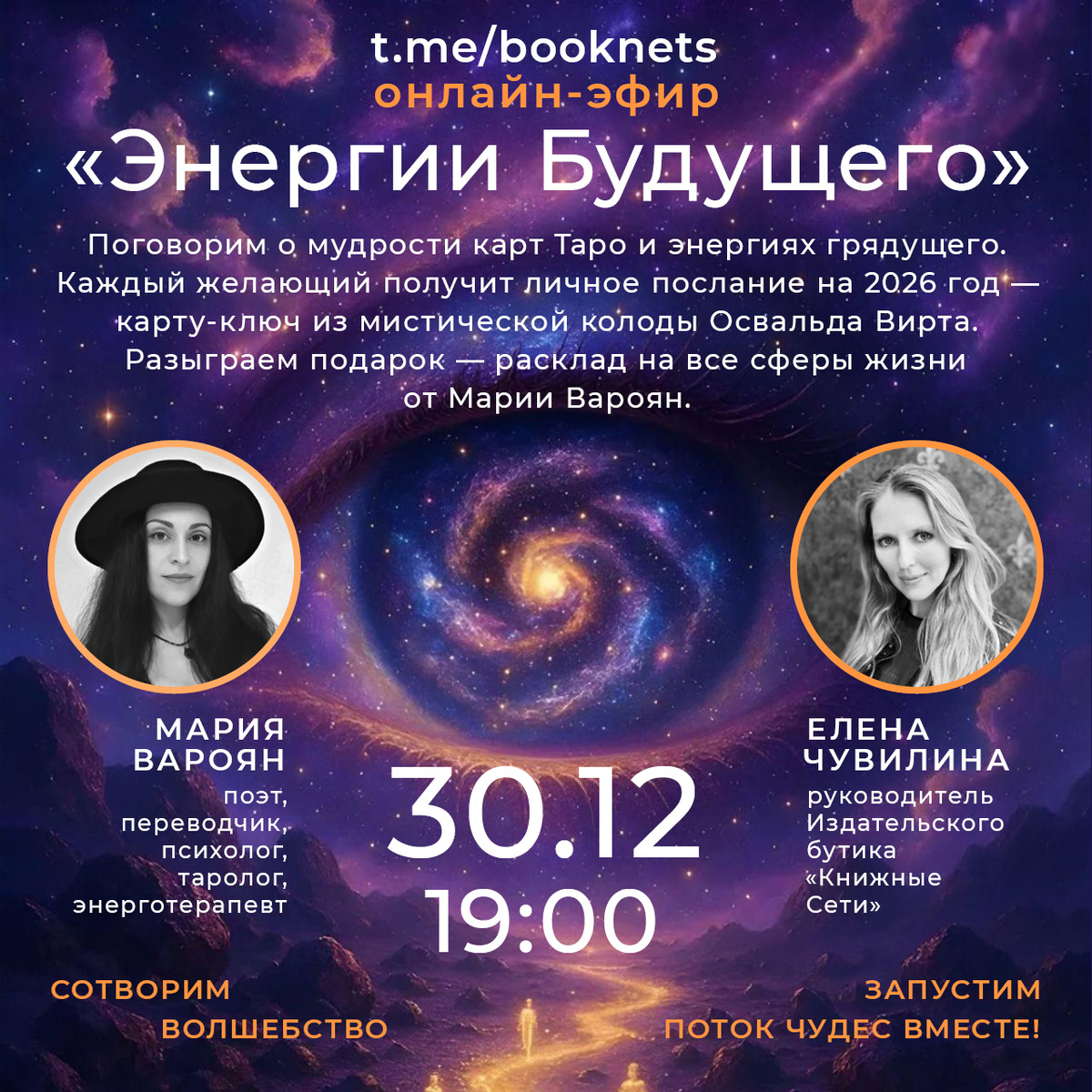 Руководитель Издательского бутика «Книжные Сети» Елена Чувилина и Мария Вароян, переводчик, таролог, энерготерапевт и практикующий аналитический психолог, создадут особое пространство, где расскажут о мудрости Таро и мягко приоткроют завесу над тем,