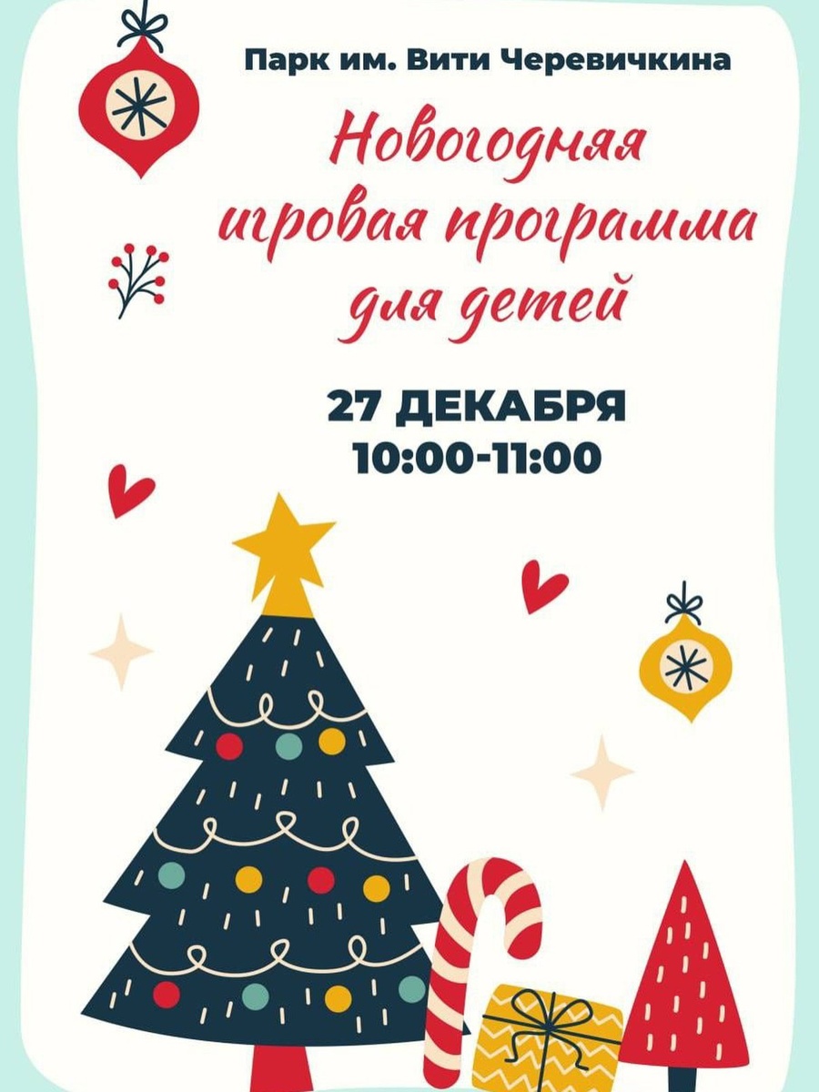 27 декабря в 10:00 в парке имени Вити Черевичкина состоится весёлая новогодняя игровая программа для детей и всей семьи