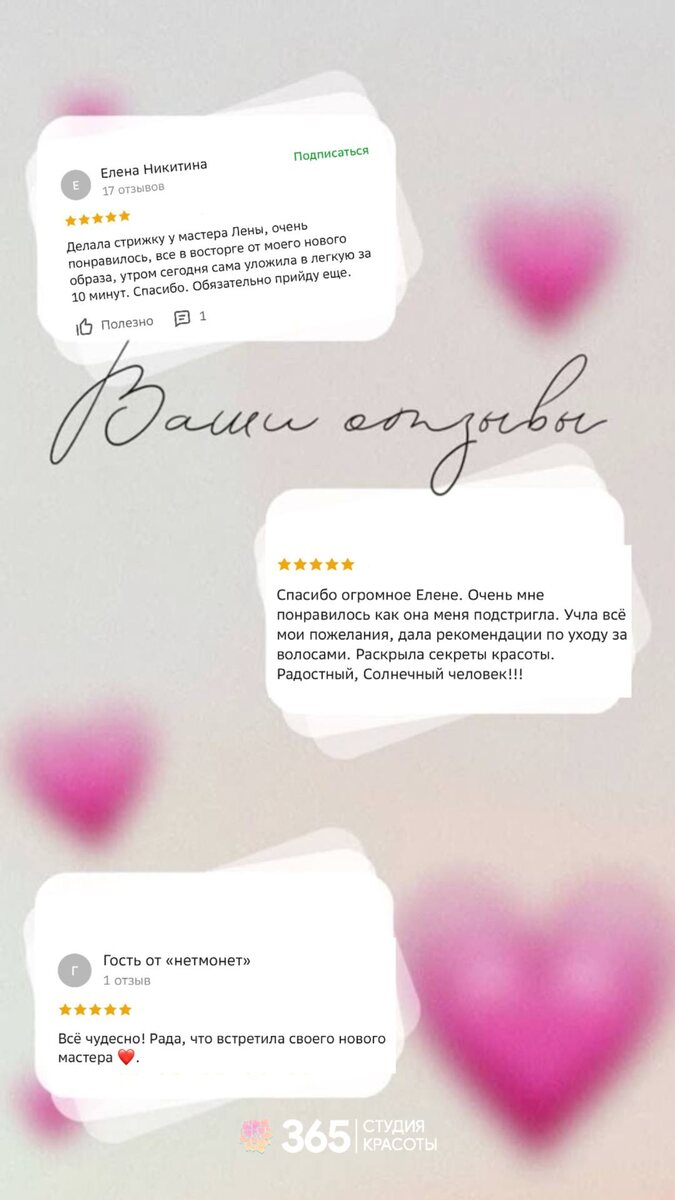 💬 Мы очень ценим ваши отзывы о наших мастерах по волосам — каждое слово для нас важно и вдохновляет делать свою работу с любовью🩷 Благодарим вас за доверие, за моменты красоты и заботы о себе, которые вы проводите вместе с нами. Ваши улыбки — наша лучшая награда☺️