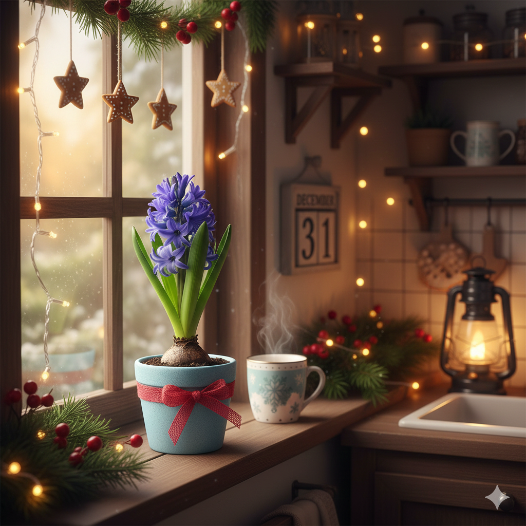 Гиацинты... они всегда окружают нас в магазинах, особенно когда на календаре еще зима, а душа уже просит света. Эти пузатые горшочки в яркой обертке стоят на кассах супермаркетов рядом с шоколадками и батарейками. Мы часто бросаем их в корзину просто так, порыву чувств, но кто они на самом деле? Откуда пришли эти маленькие воины, решившие, что цвести даже зимой — отличная идея? Я помню, как впервые принесла такой горшочек домой. Был серый, колючий вечер, и этот плотный зеленый конус на подоконнике казался чем-то нереальным. За несколько дней он вытянулся, расправил кудри, и вдруг по всей комнате разлился аромат, который невозможно спутать ни с чем. Это был волшебный аромат. Родина гиацинта — Малая Азия и Месопотамия. Там его называют «цветком дождей», потому что он расцветает с первыми весенними ливнями. А имя своё он получил из греческих мифов. Легенда гласит, что Гиацинт был прекрасным юношей, другом бога Аполлона. После его случайной гибели из капель крови вырос этот цветок — символ