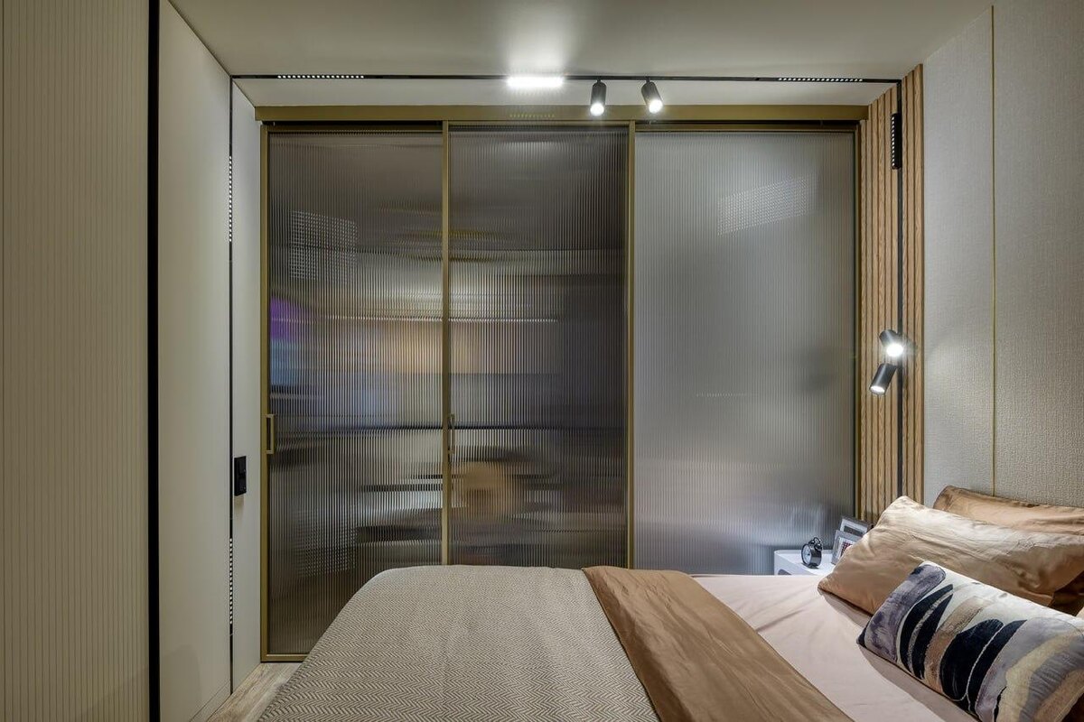 В проекте использованы раздвижные стеклянные перегородки от ProfilDoors. Проект: «Кухня-гостиная с двуспальной кроватью». Автор: Татьяна Кононова-Левина. 🔗 Подробнее на сайте. https://www.profildoors.design/