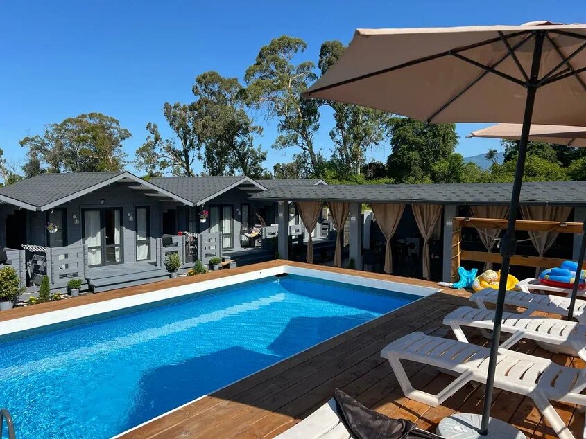 Что отличает этот комплекс от всех остальных? Во-первых, тут все абсолютно новое. Во-вторых, конечно же бассейн. А еще непревзойденно доброжелательное отношение к гостям. ✔️ДОМИКИ: Шесть деревянных домиков с размещением до 4 гостей: двуспальная кровать и диван раскладной. Шкаф платяной, тумбочки, плотные шторы, приятные детали. В санузлах: полочки, розетки и мыльницы со стаканчиками - всё удобно. Оснащение: мини-холодильники, фен, телевизор, кондиционер, Wi-Fi. ✔️ТЕРРИТОРИЯ: Уединенный внутренний дворик, зелень вокруг, шикарный вид на горы. Зона барбекю. Отлично оборудованная кухня-веранда: две плиты, две духовки, микроволновка, чайники, ящички, посуда, всякие ништяки. Парковка и стиральная машина. Бассейн размером 7 на 4 метра, с шезлонгами. Качели с навесами, батут для детей, песочни