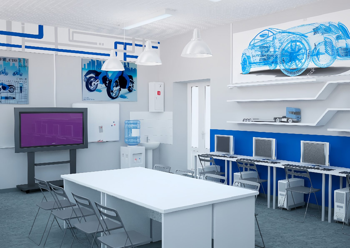 - Стенды и тренажёры — основа практического обучения. Они позволяют студентам моделировать реальные производственные процессы, отрабатывать алгоритмы работы, проводить эксперименты. Специализированные стенды для изучения 3D-моделирования и промышленного дизайна дают возможность понять технологический цикл от идеи до готового изделия.