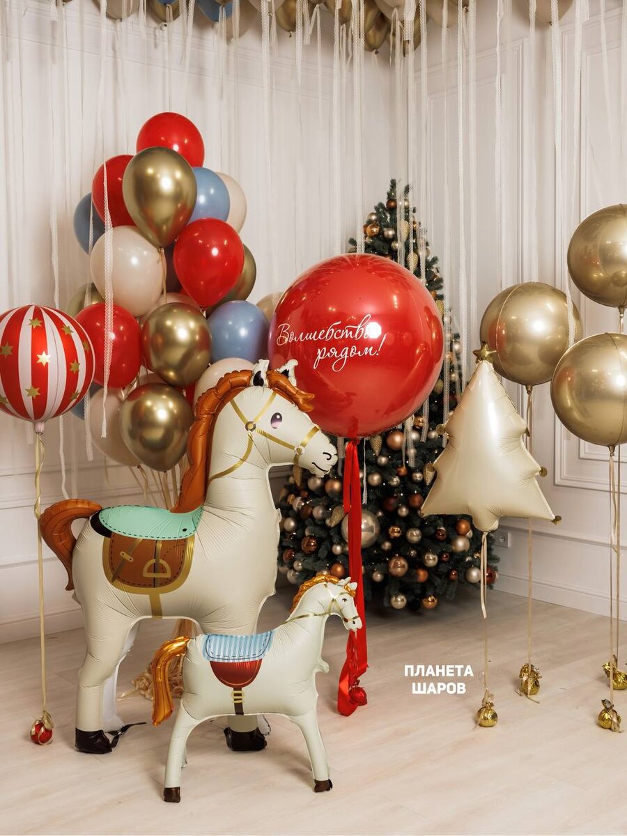 НОВОГОДНИЙ НАБОР ИЗ ВОЗДУШНЫХ ШАРОВ С ЛОШАДЬМИ