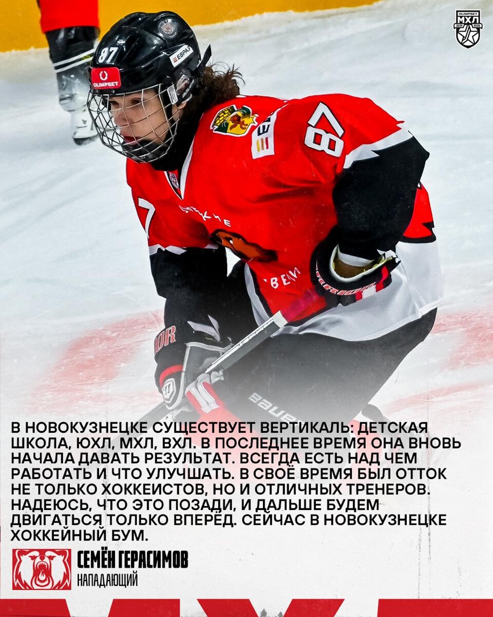 Семён дебютировал в Молодёжной хоккейной лиге в прошлом сезоне в 15 лет и вошёл в историю «Кузнецких Медведей» как второй бомбардир среди 16-летних игроков в регулярном чемпионате Лиги. Выше него в этом списке только Кирилл Капризов. Откровения о родном городе и команде, за кем следит из новокузнецких игроков, почему не обращает внимание на громкие заголовки в СМИ и ради чего готов встать в пять утра — в нашем материале! 🏒@mhlrus