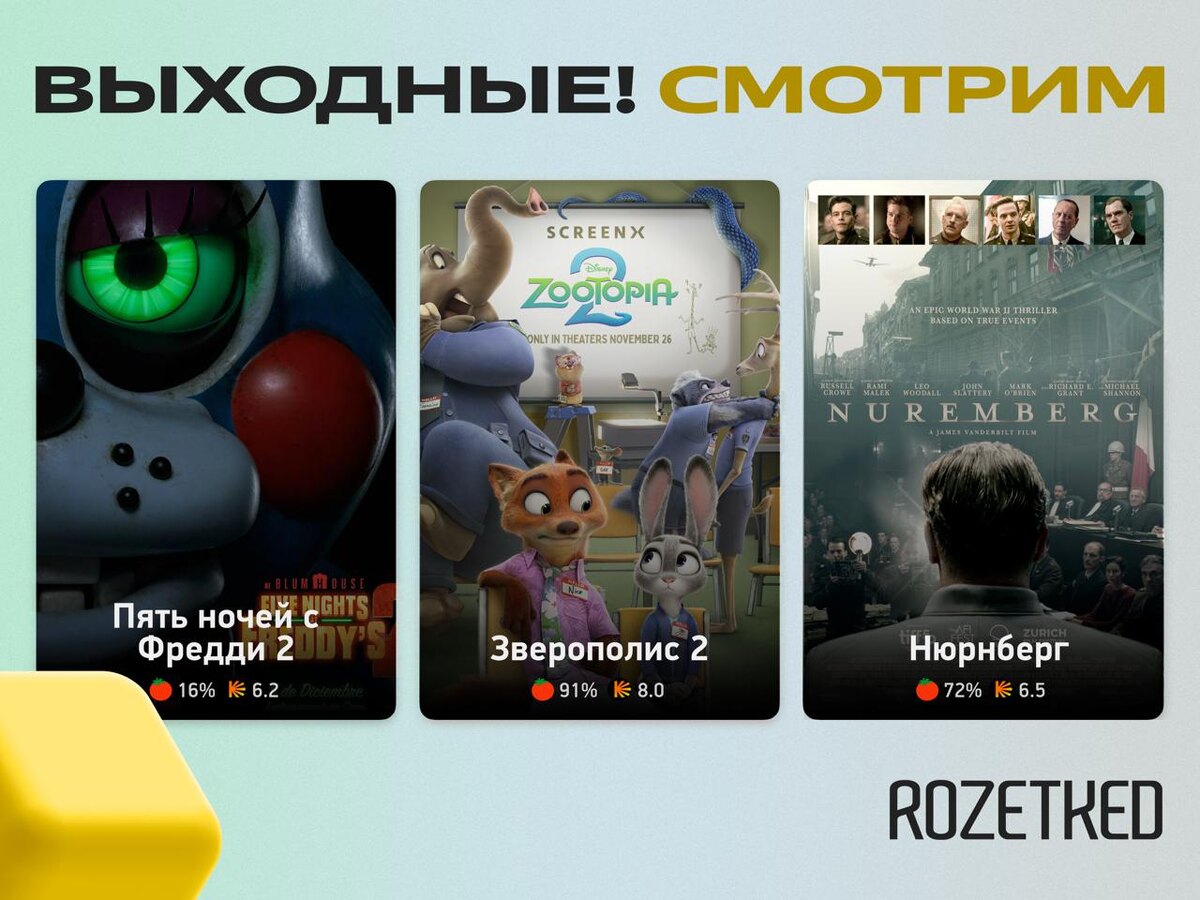 ! 📺 › Хоррор «Пять ночей с Фредди 2» неплохо приняли зрители, но разгромили критики. Оценить сиквел экранизацию одноимённой серии игр можно в онлайне. › «Зверополис 2» — один из самых громких фильмов года уже в сети. › Историческая драма «Нюрнберг» с Расселом Кроу и Рами Малеком также дебютировала в «цифре». Приятно провести время (если найдёте его в предновогодней суете, конечно)! 💼 Rozetked | Подписаться
