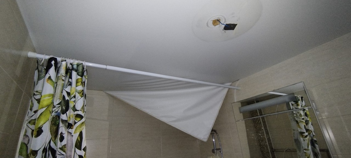 Слив воды с натяжного потолка. С демонтажом и промывкой потолка изнутри