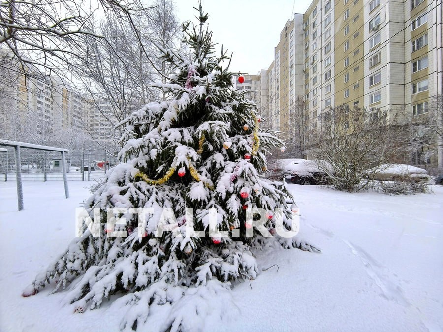 Фотофакт: во дворе корпусов 622 и 624 местные жители нарядили живую елку игрушками, предоставленными управой района Савелки