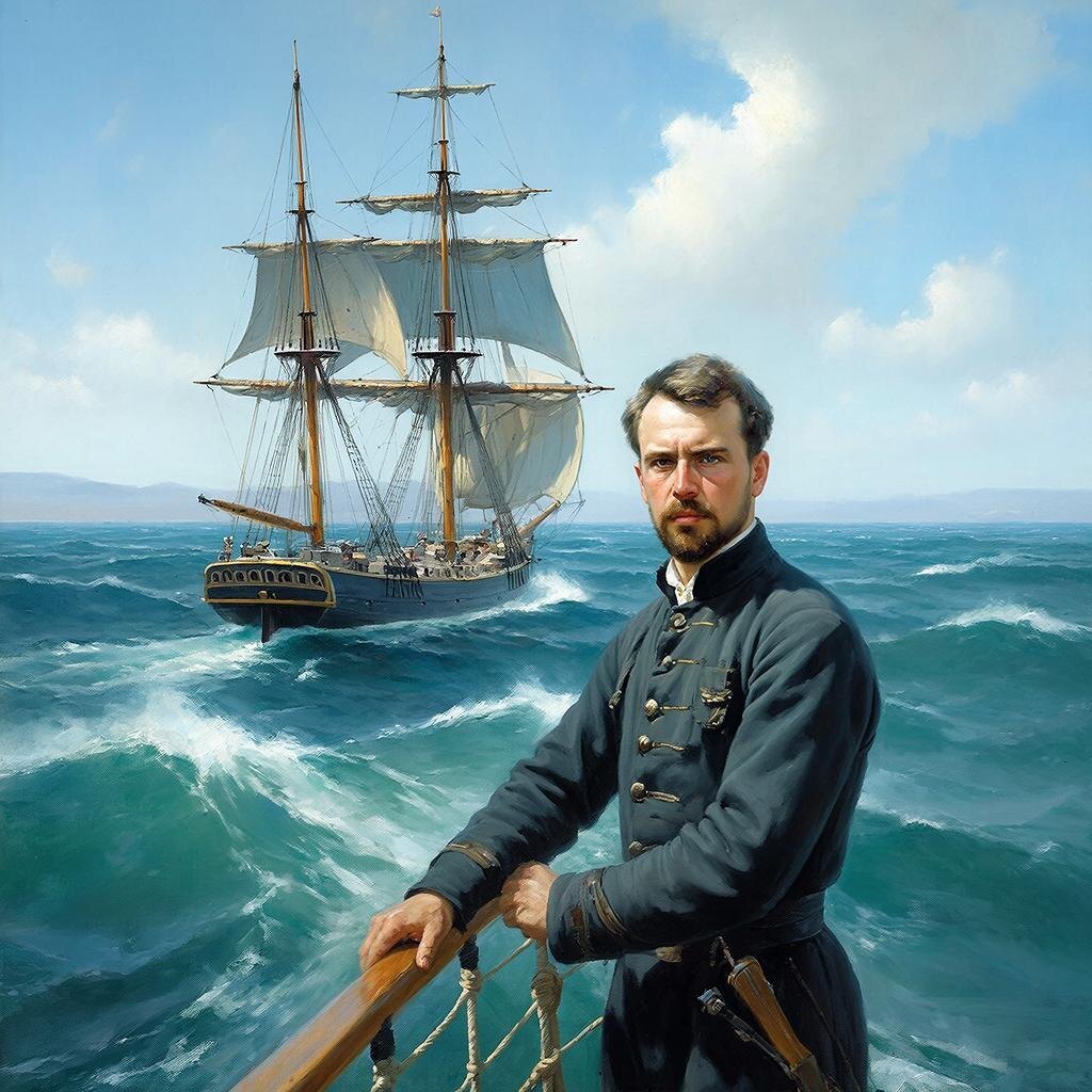 Февральский Кронштадт 1816 года дышал морским холодом и солёным ветром. В доме морского офицера на узкой улочке, где снег смешивался с угольной пылью от портовых костров, родился мальчик — Алексей. С первых лет жизни он слышал гул корабельных колоколов, крики чаек и рассказы отца о дальних плаваниях. Море стало его колыбельной, карты — первыми картинками, а компас — любимой игрушкой.