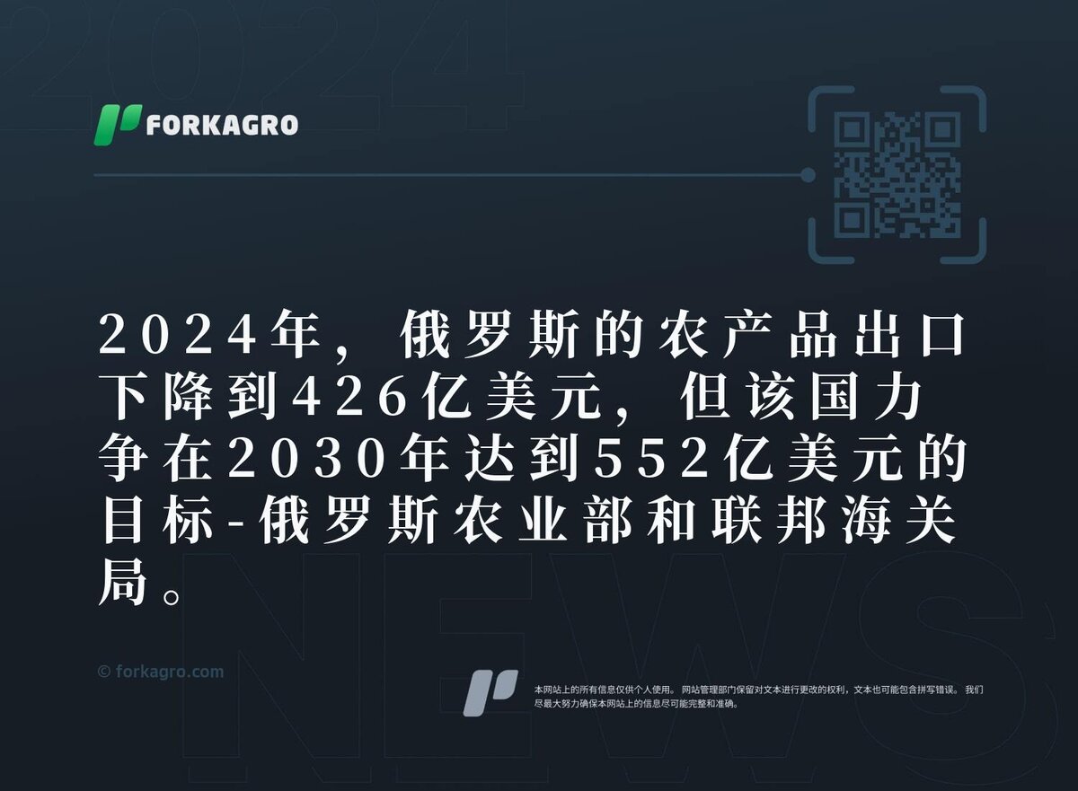 Экспорт АПК России упал до $42,6 млрд в 2024 году, но страна стремится к отметке в $55,2 млрд к 2030 году - Минсельхоз и ФТС.
