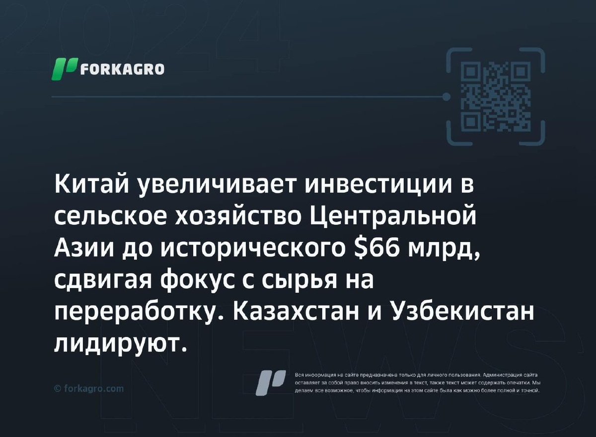 Китай увеличивает инвестиции в сельское хозяйство Центральной Азии до исторического $66 млрд, сдвигая фокус с сырья на переработку