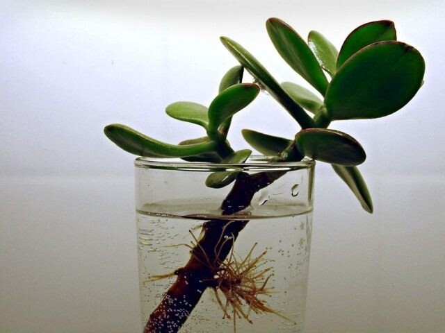 Тем не менее он имеет место быть. Способ довольно действенный. Черенок крассулы ставится в воду и через несколько недель обрастает корнями. толстянки вполне успешно выдерживают укоренение в воде.