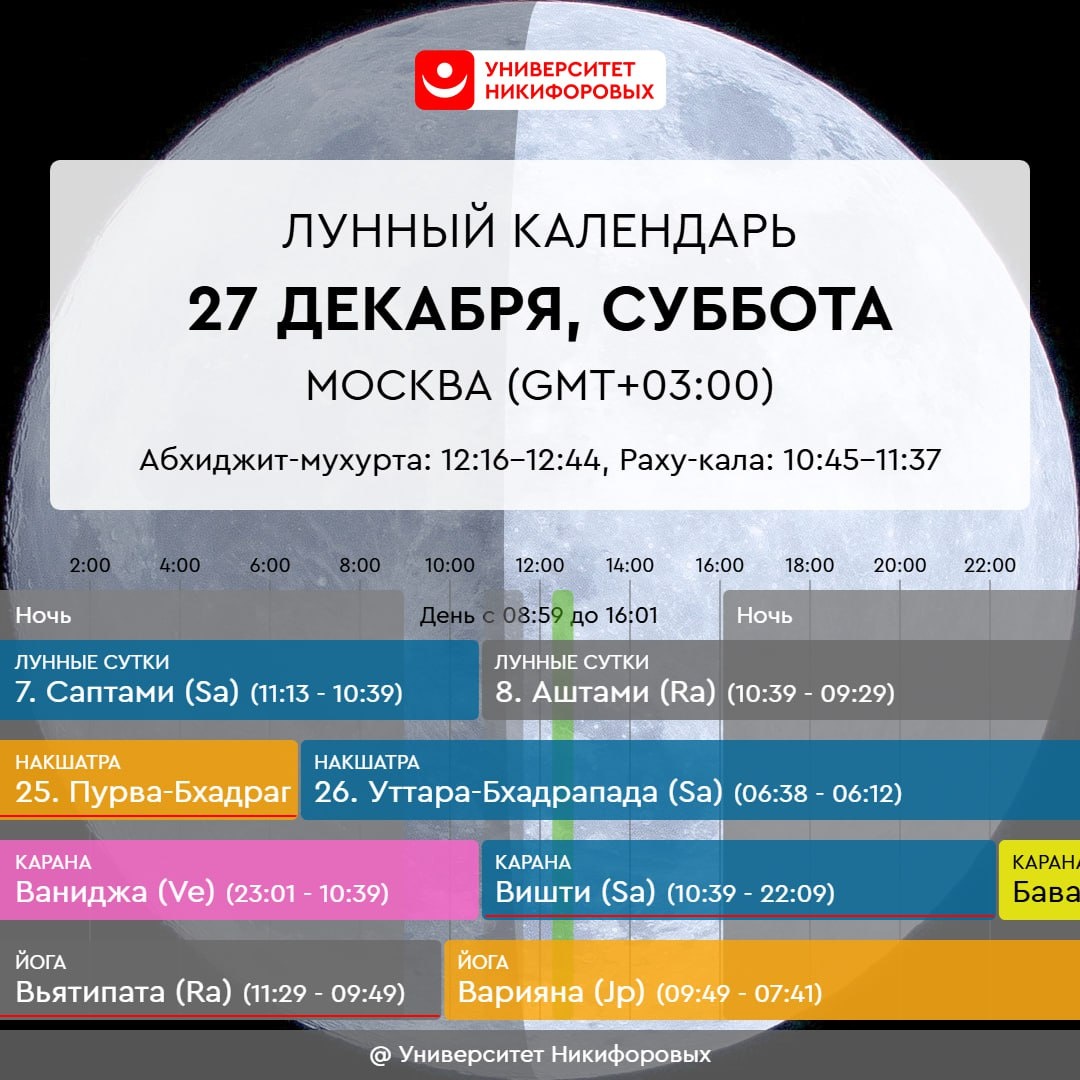 Утренние часы до 9:49 сохраняют неблагоприятность и не способствуют конструктивной деятельности. Из всего дня наиболее благоприятным будет промежуток с 9:49 до 10:39, если требуется время для важного дела, то это оно. Сегодня стоит умерить аппетит и по возможности отказаться от каких-либо интоксикаций. В целом день располагает к аскезам и духовным практикам – интроспекции, медитации. Он поддержит спокойную, умиротворяющую деятельность. Хороший момент, чтобы послужить, помочь, поддержать того, кто в этом нуждается. Говорится, что у Бога нет других рук кроме наших, и это прекрасная возможность подтвердить этот тезис. Посмотрите, кто из вашего окружения требует поддержки, – одинокий пожилой человек, болеющий коллега, подруга с маленьким ребенком или кто-то из домашних, жаждущий вашего внимания, – позаботьтесь об этом человеке, насколько у вас есть внутренний ресурс и возможность.