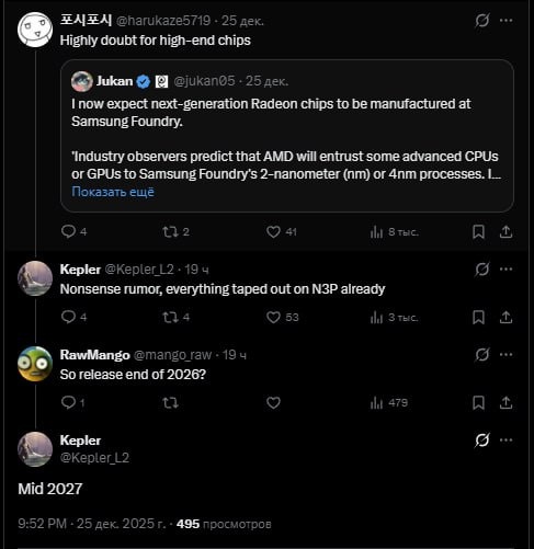 и будут выпускаться на техпроцессе N3P TSMC. Инсайдер также назвал вымыслом, что AMD планирует переносить производство на Samsung.