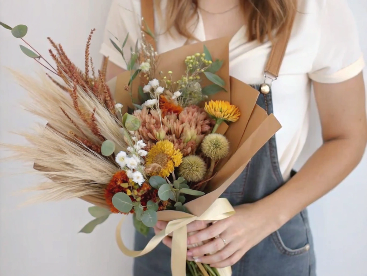 Долговечность — главное преимущество. Композиции остаются неизменными от сезона к сезону, не требуют замены воды, подрезки стеблей или покупки новых цветов каждую неделю. Это делает сухоцветы экономичным и экологичным вариантом, который снижает расход природных ресурсов и отображает тренд на осознанное потребление.