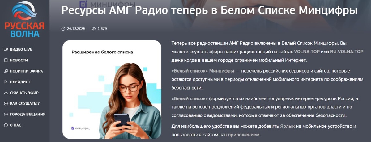 Внезапно назревший антикризисный новогодний сюрприз от Минцифры - крутейший радиоплейер VOLNA.TOP, а с ним и все ресурсы АМГ Радио - теперь