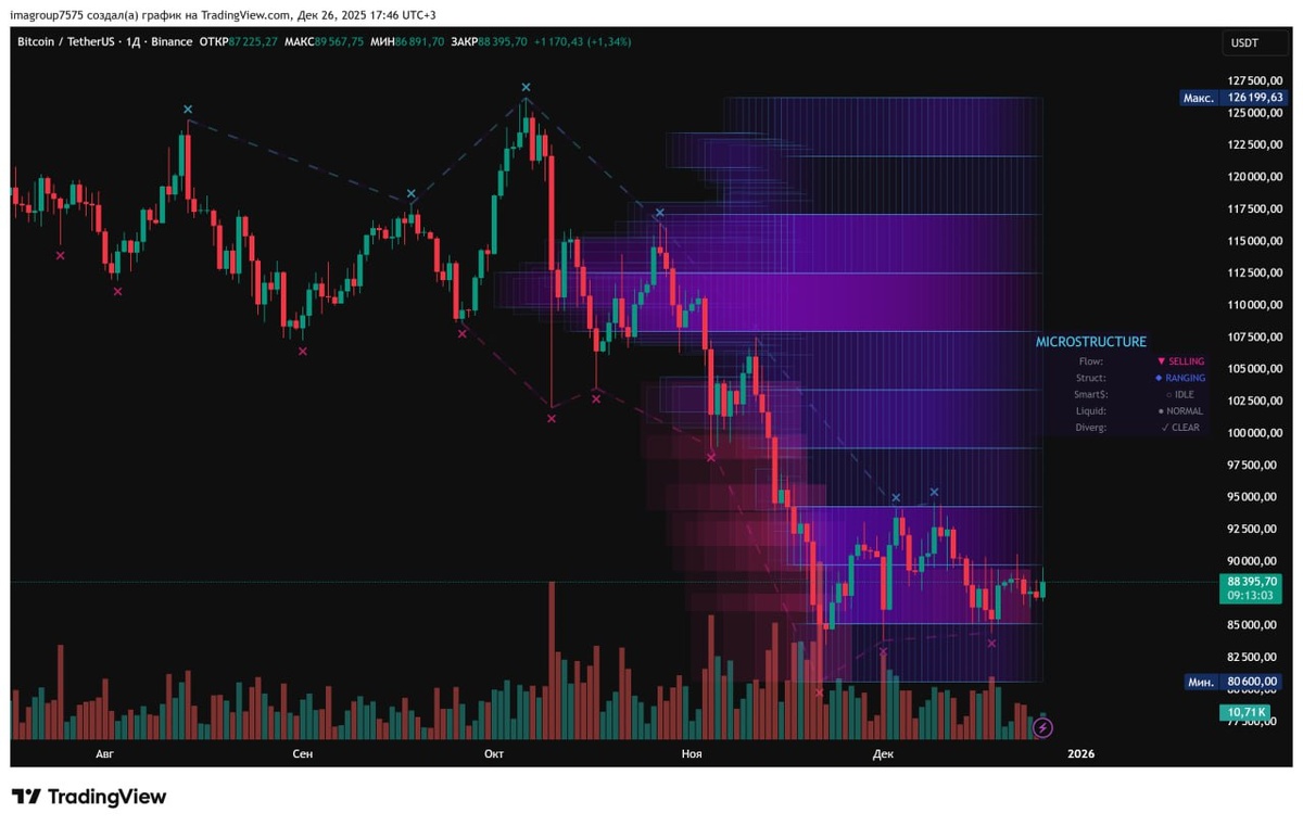 Цена консолидируется после резкого снижения. Это фаза стабилизации, а не начало нового тренда. Основная логика до конца января — работа от границ диапазона, без «погони за свечой». Ключевые зоны: Поддержка — 87–88k, ниже критично 86.5k. Сопротивление — 89.5–90.6k, выше — смена настроений. Приоритет: Лонг — только от поддержки с подтверждением. Шорт — от верхней границы при признаках отказа. Пробой и закрепление выше 95k — сигнал к переходу в бычий режим. #BTC #BTCUSDT #Bitcoin #крипто #трейдинг #теханализ