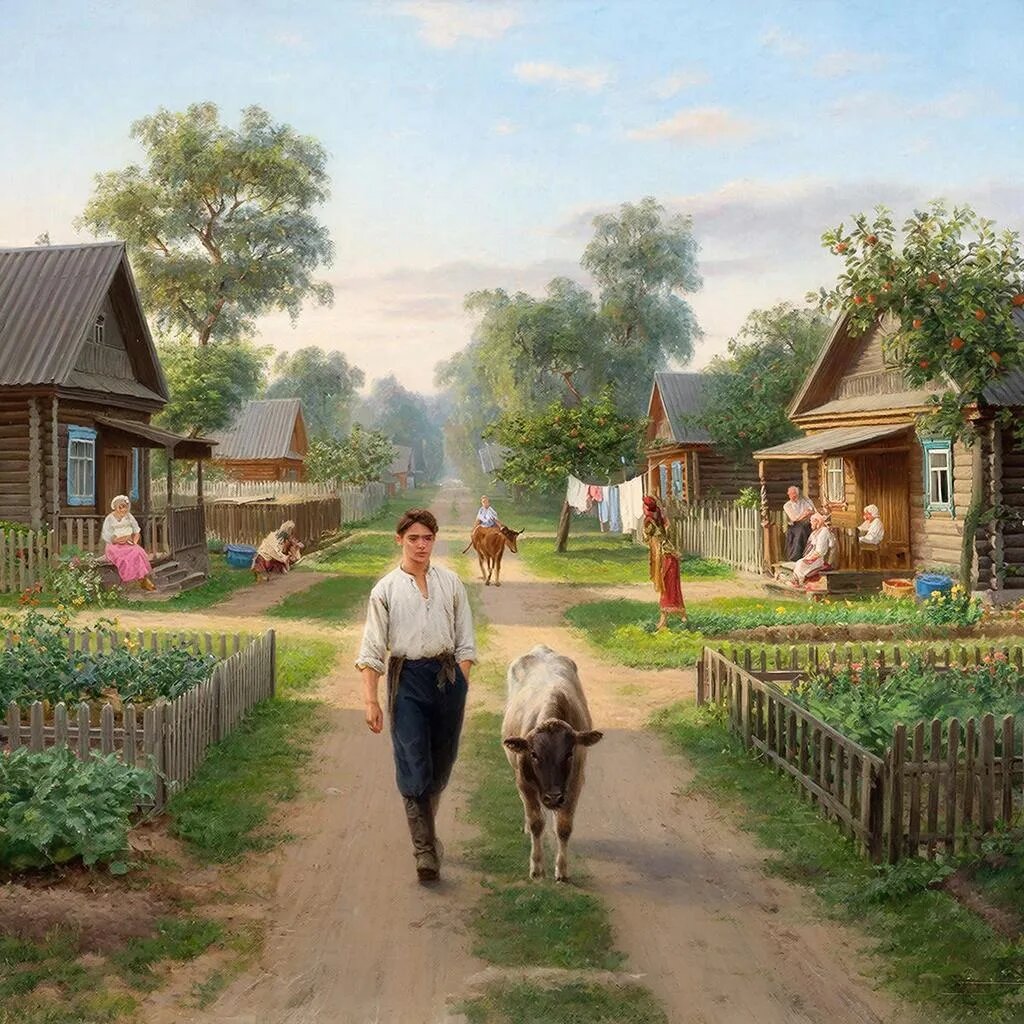 Деревня жила своей размеренной жизнью: старики сидели на лавках у изб, переговаривались вполголоса; женщины носили воду из колодца, кормили скотину, стирали бельё; мужчины с ранней зари были в поле или в мастерских. Дети тоже были заняты , на подхвате у родителей. Огород , скотина, поле...Все знали своё дело, все были при деле — и только он, выпускник пединститута, чувствовал себя лишним.