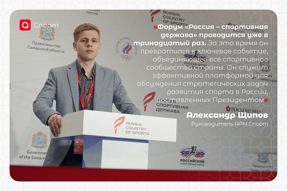 Один из участников делегации АРМ на XIII Международном форуме «Россия — спортивная держава» — руководитель направления АРМ.Спорт Александр