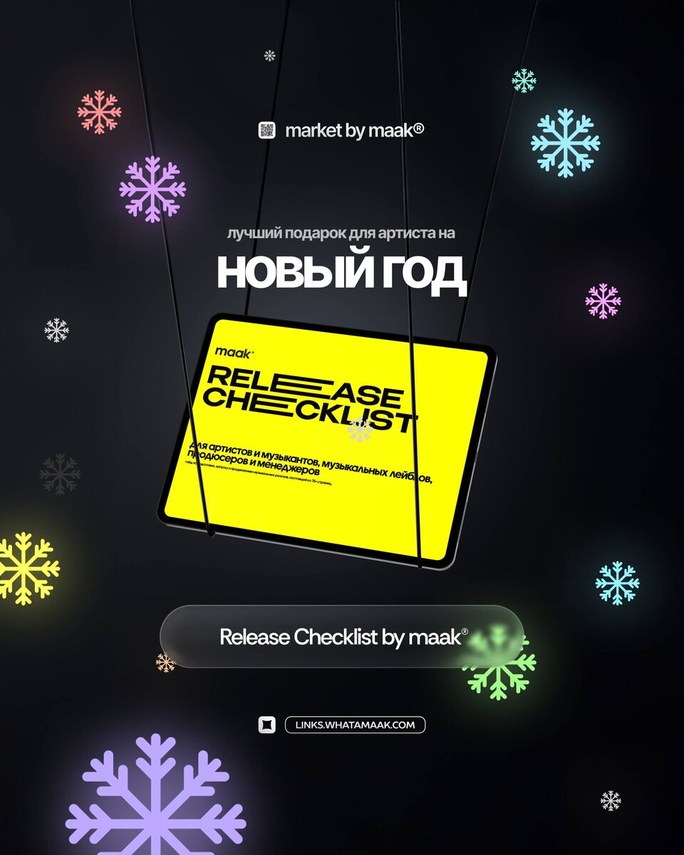 ❤️ «Release Checklist» by maak® — это путеводитель по подготовке, запуску и продвижению музыкальных релизов. Внутри — всё, что нужно артисту для эффективного релиза. Подходит для артистов, музыкантов, диджеев, продюсеров, лейблов и менеджеров. 🔍 Что внутри: — 75+ страниц пошагового чек-листа по подготовке и запуску релиза — источники трафика и продвижения музыки — инструменты верификации и привязки релизов к соцсетям — гайды по оформлению соцсетей и карточек артиста — ресурсы для pre-save, smart-links и коротких ссылок — базы контактов: • СМИ, радио, интернет-издания (300+) • админы пабликов YouTube / VK / TikTok / Instagram / Telegram (200+) • админы плейлистов Spotify / Яндекс Музыка / Apple Music / Deezer / VK (700+) — лейблы, дистрибьюторы и агрегаторы — сервисы для питчинга, рекламы и аналитики — инструменты для PR, e-mail-рассылок, донатов, SEO и автоматизации — маркетплейсы битов, обложек и готовых песен — ответы на частые вопросы + практические советы 🛒 Получить 🔍 Други