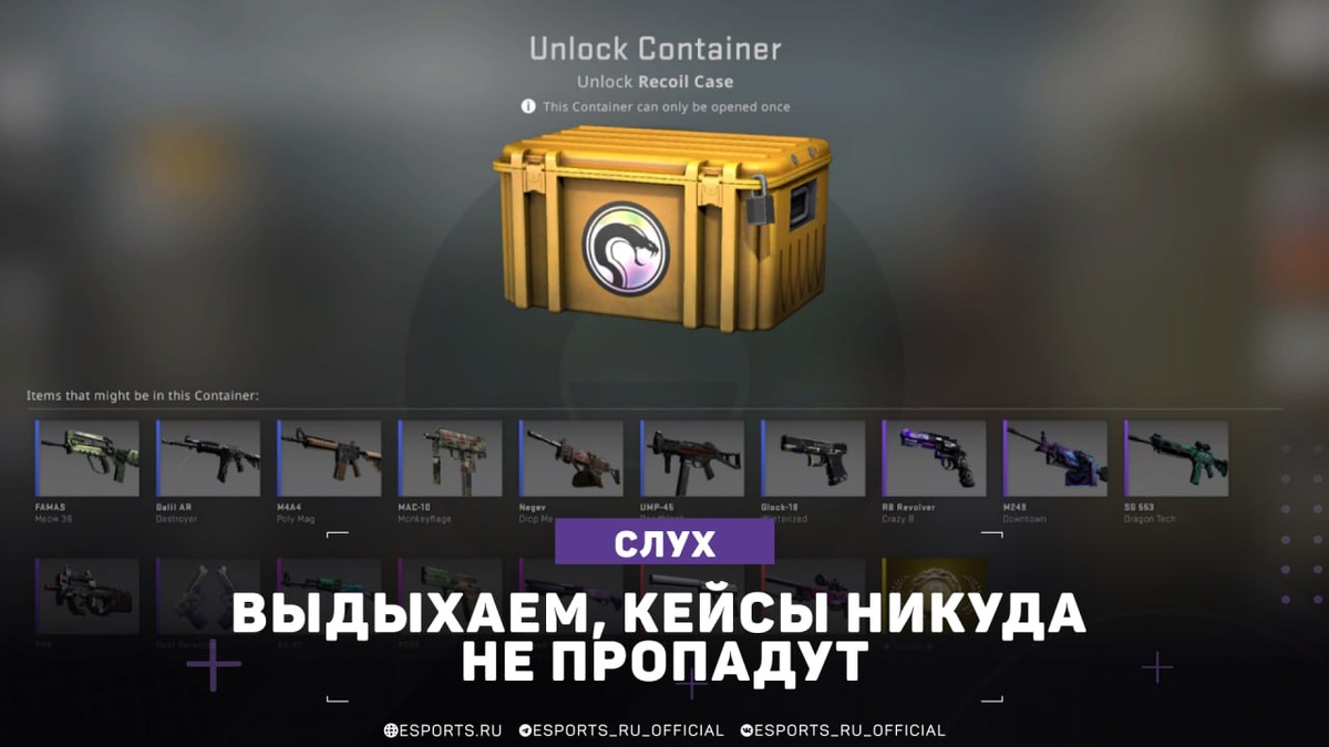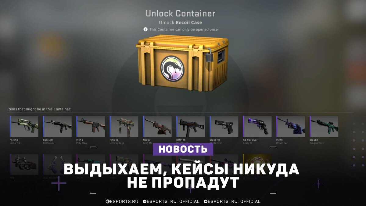 По инсайду от датамайнера, кейсы никуда не пропадут, но систему слегка переработают. С 2026 года их можно будет открывать без ключей, по принципу сувенирных. При этом получать такие кейсы можно будет только через внутриигровой магазин «Арсенал». 👍 Esports.ru | CS