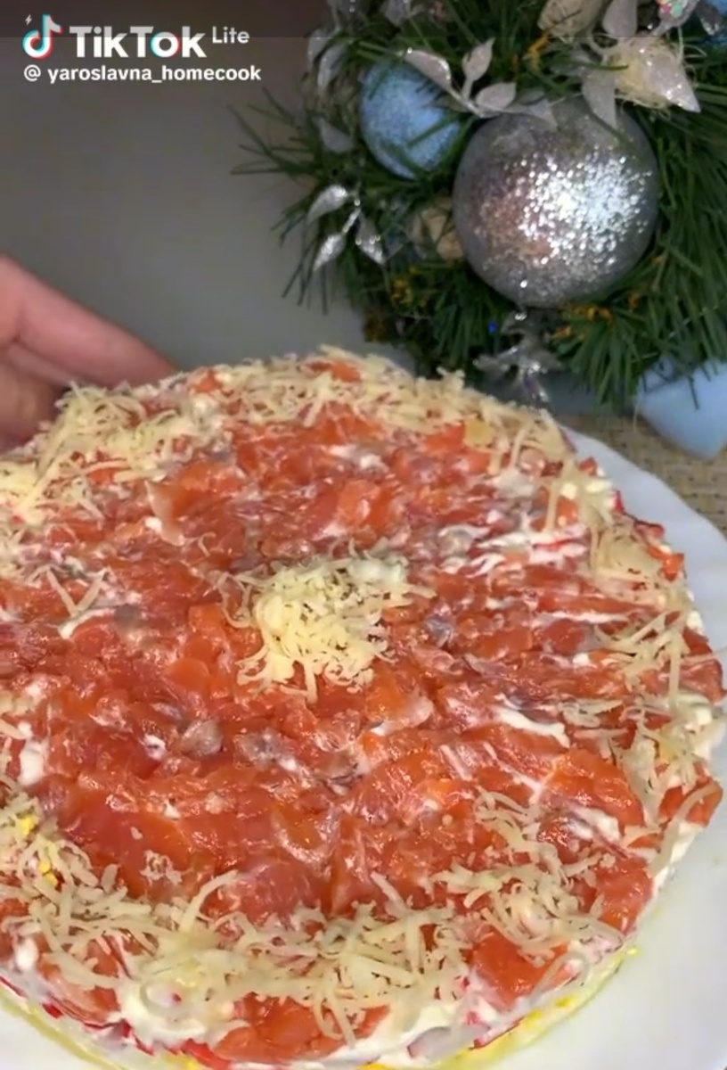 3. Салат-торт со слабосолёной сёмгой и крабовыми палочками