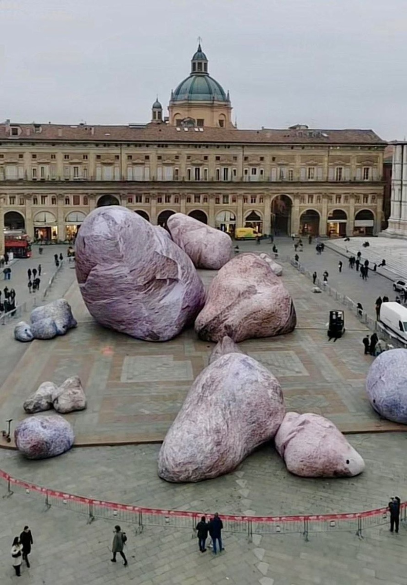 Вот такие непонятные... надувные камни, или как это назвать... украсили центральную площадь итальянской Болоньи – Пьяцца Маджоре.