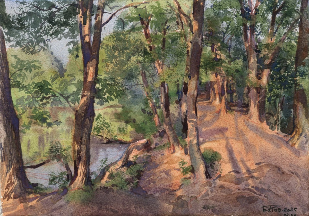 20250602 Пруд усадьбы Ясенево / Pond Yasenevo. Moscow / 21x30 cm / plein air watercolor.