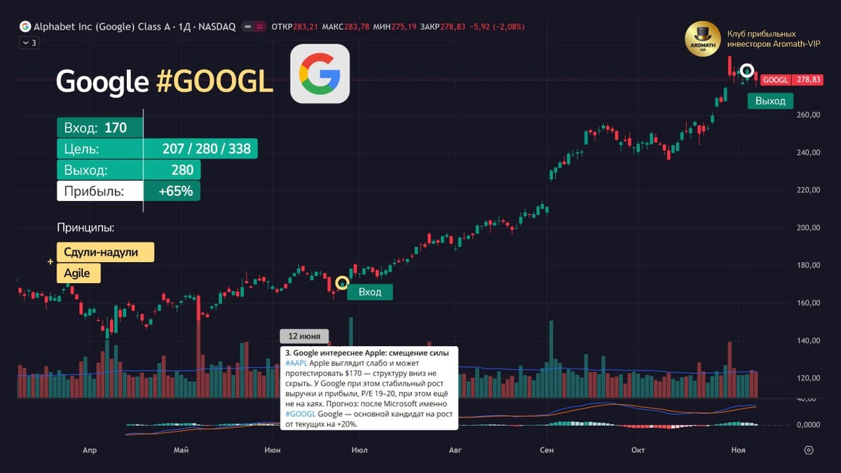 🥇 Как мы уже взяли +65% по Google и почему вышли, хотя могло ещё расти