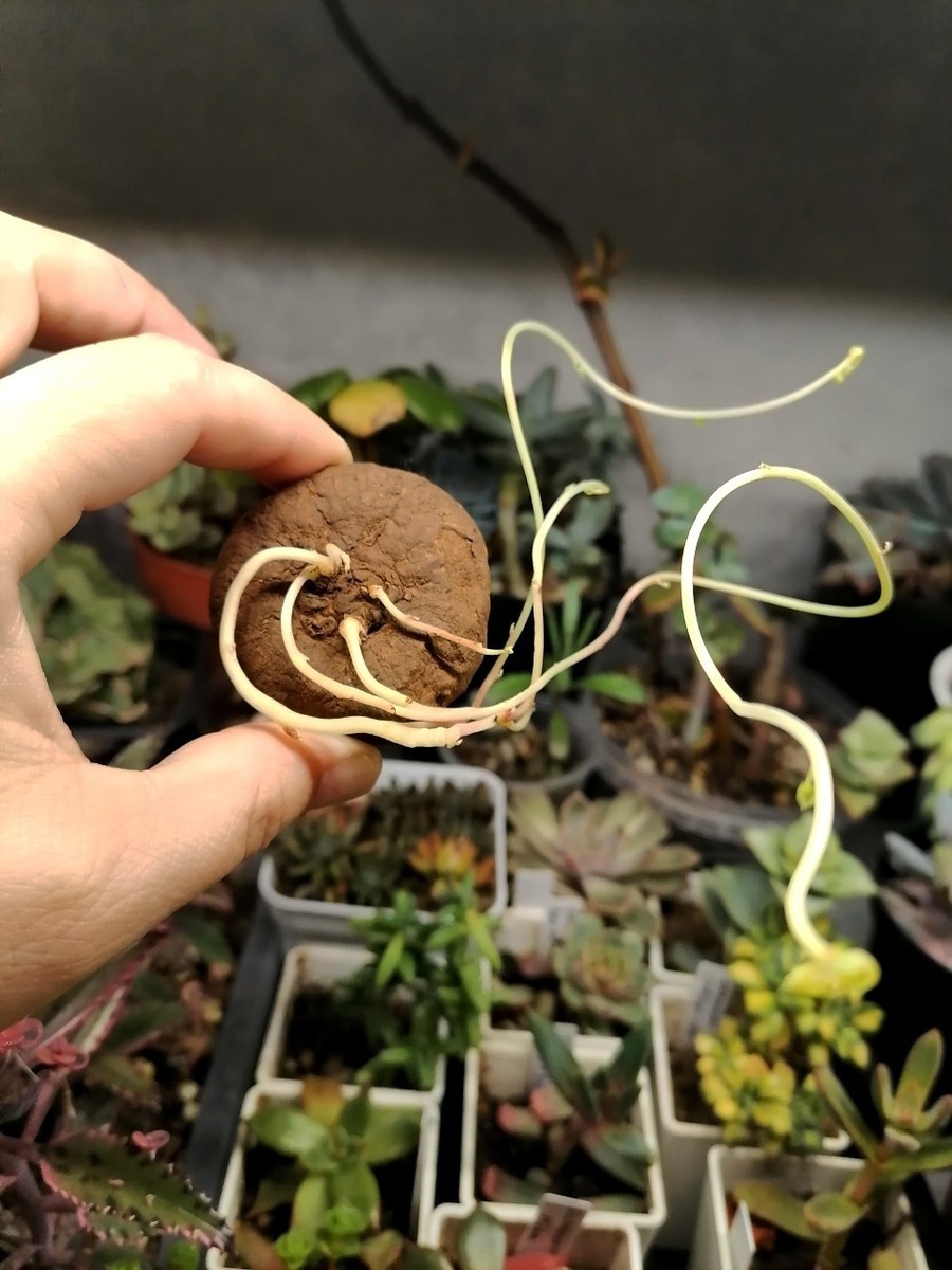 ?) Месяц моталась по сортировкам, доехала наконец то) Я уже ничего живого не ждала, а она растёт видите ли) Моя мечта Стефания Эректа 😍 Как корешки пробудить у неё? У кого есть опыт, напишите, пожалуйста 💖