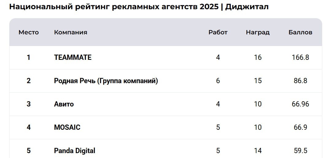 Категория «Диджитал» аккумулирует проекты, которые созданы исключительно для цифровой среды: интерактивные форматы, сайты, приложения, спецпроекты и решения для соцсетей. Победитель года — агентство TEAMMATE, получившее 166,8 балла. Прежде всего, это результат плодотворного сотрудничества агентства и российского ретейлера «Пятёрочка». 😀Пожалуй, лучший телеграм-канал о маркетинге