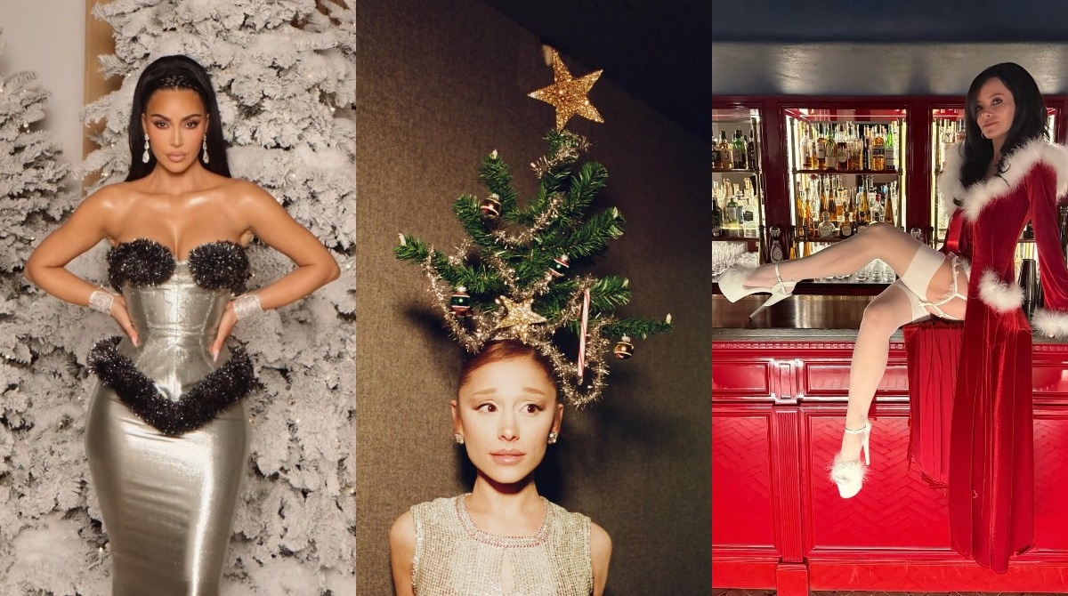 Нет, это не слишком тёплая зима и дождь стеной в декабре, это причудливая шляпа Дженнифер Лопес с длинной бахромой. А, может, так дива окончательно прощается с Беном Аффлеком и берёт в новый 2026 год только позитив и взаимную любовь? Сегодня королева драмы в нашей подборке — роковая Джей Ло. А за новогоднее настроение отвечает Ариана Гранде. Певица и актриса переключилась с роли волшебницы на главную царицу Рождества и Нового года — украшенную ель. Интересно, что Ариана водрузила ёлочку на голову и добавила игрушки: леденцы-тросточки, шары, мишуру и золотую звезду, балансирующую на самой верхушке. Аксессуар кажется таким же неустойчивым, как наша нервная система к концу декабря. Ещё мишуры! В праздничные ряды врывается Ким Кардашьян в винтажном платье Thierry Mugler аж 1986 года! Серебряная ткань плотно облегает фигуру Ким (надеемся, обойдётся без треснувших швов, на что время от времени жалуется дива), и образ Кардашьян доживёт до следующего года. А в декоре Ким царит любимый минима
