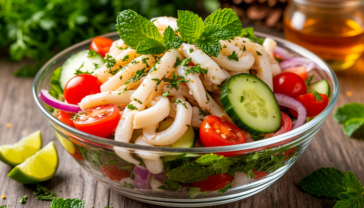 С кальмаром и маринованным луком: хрустящая свежесть