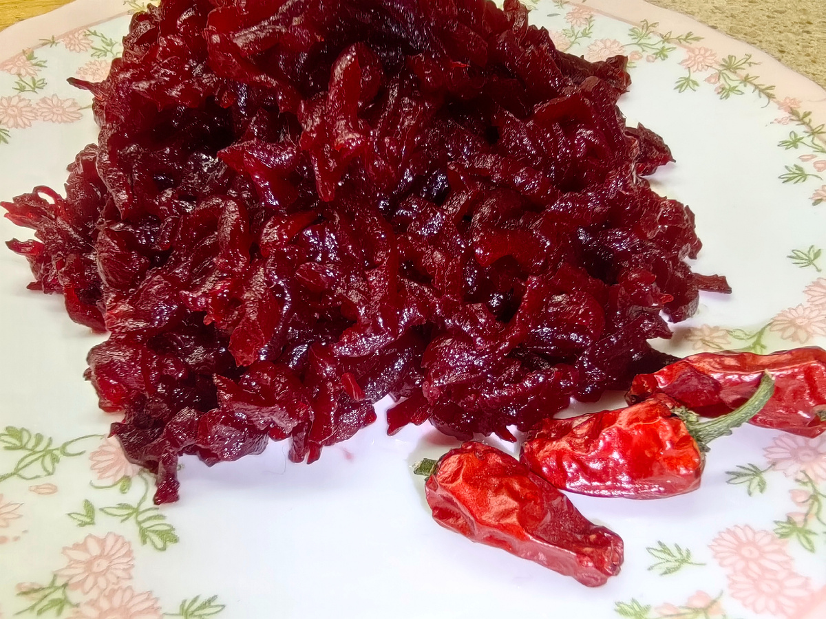 Моя бабушка всегда ставила на стол свекольный салат, так сказать, для осадки. Самый простой, из двух-трёх ингредиентов. А на кухне всегда держала тяжёлую артиллерию – отварную и очищенную свёклу, завёрнутую в фольгу. А всё потому, что свекольный салат, сколько его не приготовь, всегда улетает первым. И всегда можно быстренько натереть новую порцию.