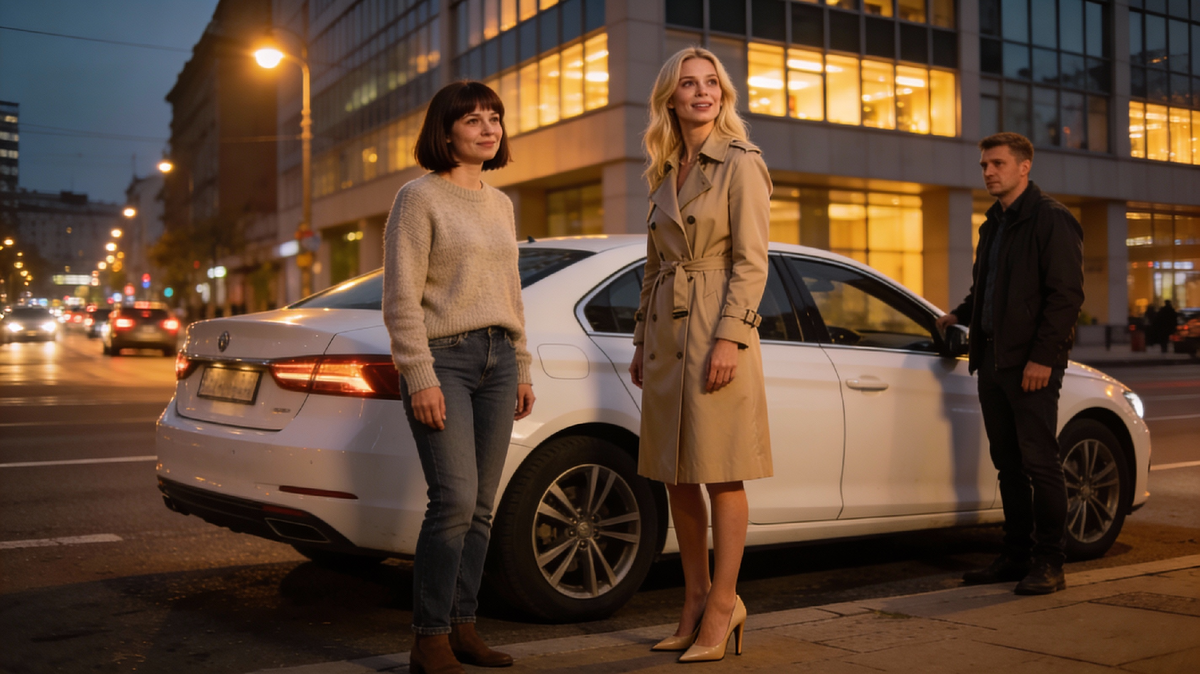 Она уже подходила к двери, когда увидела знакомую машину. Белый седан, припаркованный у обочины. На крыше — шашечки такси. Марина остановилась, присмотрелась. Точно, это же тот самый седан, который она видела на парковке возле офиса. Вероника как-то хвасталась, что у них именно такая машина.