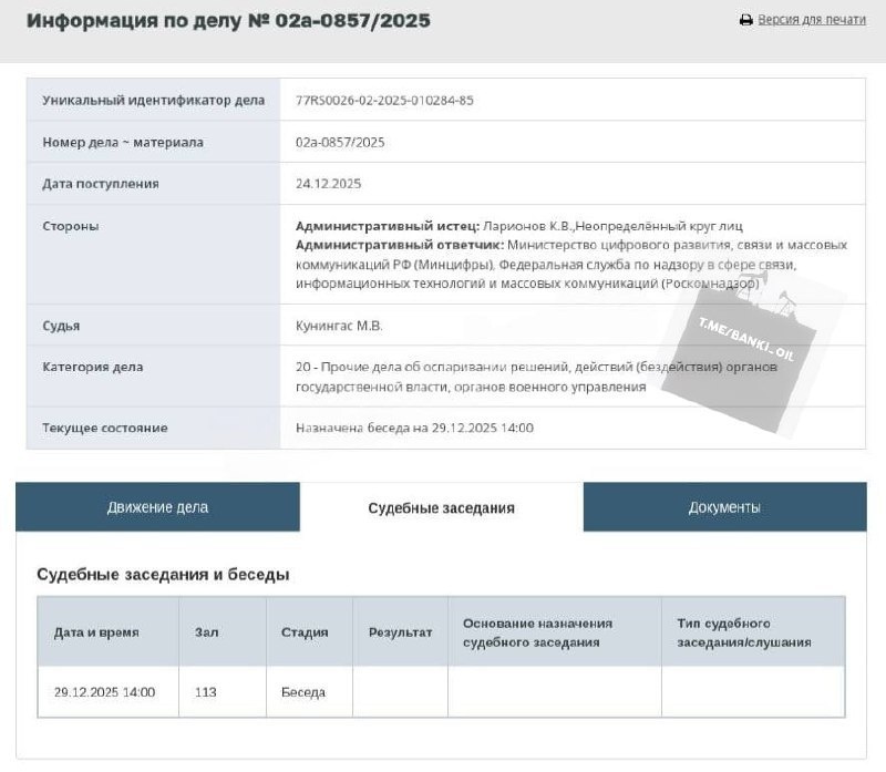? В Таганском суде Москвы 29 декабря пройдёт первое заседание по иску к Роскомнадзору и Минцифре. 42 истца считают, что блокировка звонков в Telegram и WhatsApp нарушает их конституционные права. Они требуют признать ограничения незаконными и дать пользователям самим решать, пользоваться ли запрещёнными функциями. Судья проверит иск и уточнит требования сторон. #суд #РКН #мессенджеры Коллектор событий нашёл эту новость в каналах: Баррель черной икры • Прямой Эфир • Новости • Однажды в трендах • КК • DevHub ℹ️ Информация собрана нейросетью из публичных источников и не является официальной. 📰 Читайте Коллектор Событий: В Телеграм: https://dzen.ru/id/69282fd0368998038a2b989d В Дзен: https://dzen.ru/event_collector В ВКонтакте: https://vk.com/collector_event