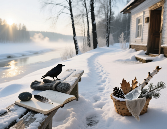 - Обонятельный: Отсутствие летних цветочных ароматов и появление чётких, острых запахов — морозной свежести, дыма из трубы, хвои.