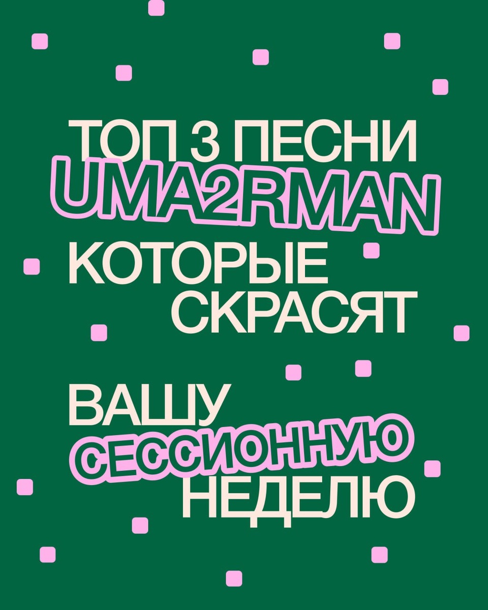 мало.сна. Не самый лёгкий период, правда? Но мы верим, что правильная музыка может дать мощный заряд энергии для финального рывка! Специально для вас — три драйвовые композиции от «Uma2rman», которые точно поднимут настроение: Ты далеко, Ума Турман и Не позвонишь Включайте погромче, танцуйте между подходами к ноутбуку и чувствуйте, как силы возвращаются. Ведь совсем скоро — каникулы, Новый год и долгожданный отдых! 💥 Держитесь, вы справитесь!