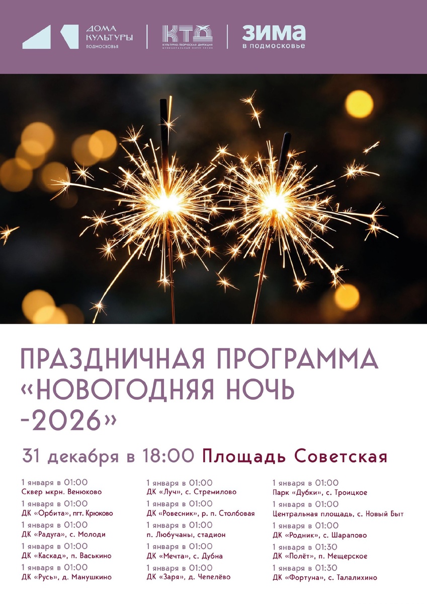 ✨ Близится НОВЫЙ ГОД, а воздух наполняется ароматом мандаринок и хвои 🎁❄️🎄Приглашаем вас принять участие в традиционных новогодних гуляниях, которые пройдут в округе Чехов. 🎄🌟Предновогодняя программа начнется в городе Чехов на Советской площади у здания Администрации 31 декабря в 18:00 и продлится до двух часов утра первого дня нового года. В других районах нашего округа подхватят празднование Нового года уже 1️⃣ января. Приходите встретить Новый год вместе с нами 🎉🎄🥰❄️ 📆 31.12.2025 🏢 Площадь перед Администрацией 📍 г. Чехов, Советская пл., д.3 🪙 Вход свободный❗️ ⭐Поддержать канал голосом ✅ Мероприятия Чехов https://dzen.ru/id/66cc4b48e9ef144699238a51 http://vk.com/chekhov_events http://dzen.ru/chekhov_events