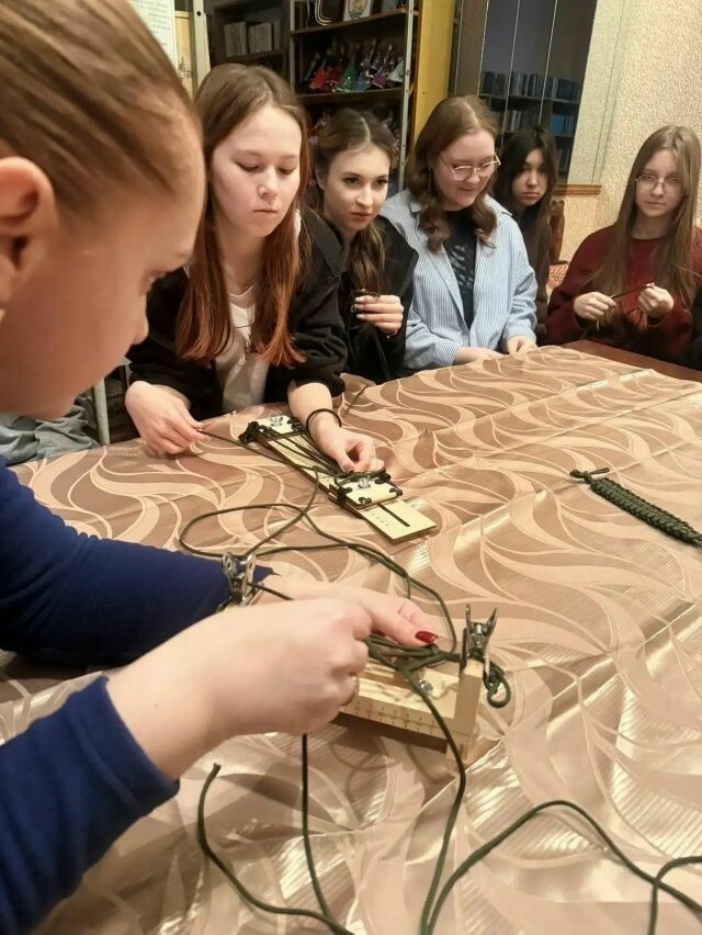 К учащимся Октябрьского многопрофильного профессионального колледжа, проживающим в общежитии, пришла Анна Прокопчук — волонтёр мастерской «Помощь защитникам» в п. Нижняя Пойма Красноярского края и активная мама из родительского комитета одной из групп колледжа. Анна Александровна провела для ребят мастер-класс по плетению «браслетов выживания». Молодые люди старались максимально точно повторить за ней каждый узел. А после за чашкой чая, в уютной обстановке библиотеки общежития ребята обсуждали планы на будущее и делились впечатлениями, сообщили в колледже. Фото: предоставлено ОМПК